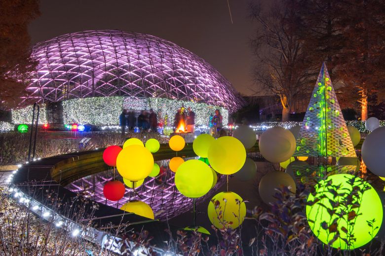 Garden Glow at the Missouri Botanical Garden features over two million dazzling lights, transforming the iconic garden into a richly lit setting with mesmerizing displays and unforgettable moments. Enjoy interactive photo opportunities, traditional holiday music, and festive food and beverages.